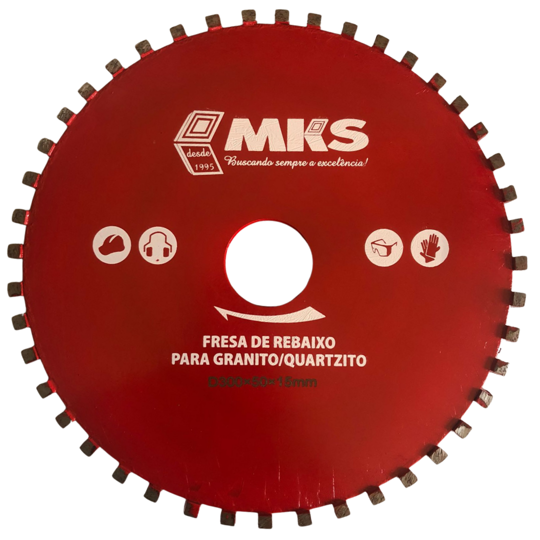 Projetada para atender às exigências dos profissionais do mármore e granito, nossa Fresa diamantada para rebaixo 300 mm x 15 mm oferece cortes precisos, acabamento superior e durabilidade excepcional. Fabricada com materiais de alta resistência e pastilhas diamantadas, é ideal para trabalhos como rebaixos para cubas, canais de escoamento e efeitos ripados decorativos em pedras naturais.